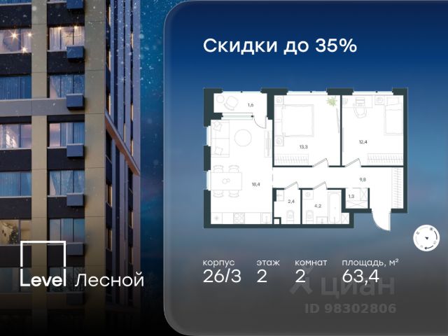 Продаётся 2-комнатная квартира в сданном доме (Ангелово-Резиденц, 49 (Дом 49)), срок сдачи: II-кв. 2025, общей площадью 64.6 кв.м., на 3 этаже. Расположение, транспортная доступность
