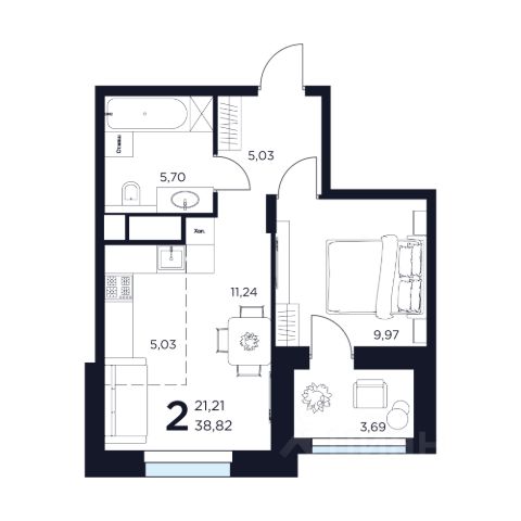 Общая площадь квартиры 56 кв. м, кухня 13 кв. м. Распашонка, две изолированных комнаты, остекленная лоджия 7 кв. м., раздельный санузел, в прихожей можно установить большой шкаф и она останется просторной. Удобная планировка для семьи с детьми, позволяет установить много систем хранения, не загромождая пространство.