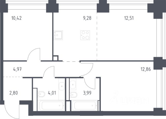 В премиальном квартале "Матч Поинт" представлены трехкомнатные апартаменты общей площадью 63,8 м² на 8 этаже. Уникальное пространство свободной планировки и большое количество окон позволяют реализовать любые интерьерные идеи. Вариант планировочного решения: Кухня-гостиная 14,2 м² — уютная зона для встреч с близкими. Две спальни — 12,5 и 18,1 м² — комфортные помещения для отдыха. Коридор 5,1 м² и прихожая 4,7 м² обеспечивают комфортную организацию пространства. Два санузла 2,2 и 5 м² — дополнительное удобство. Высота потолков 3,05 м создаёт ощущение воздуха и простора. О жилом квартале "Матч Поинт" Расположение, доступность, инфраструктура. Жилой квартал расположен в престижном районе Москвы — рядом с Кутузовским проспектом, Триумфальной аркой и станциями метро "Парк Победы", "Филевский парк", "Багратионовская" и "Минская". Парк Победы, Поклонная гора и Филевский парк создают прекрасные условия для отдыха. Вблизи расположены МГУ и МГИМО. Из окон комплекса открываются виды на Парк Победы, панораму Кутузовского проспекта, "Москва-Сити". В квартале работает полноценная инфраструктура: более 10 салонов красоты, аптека, химчистка, ателье, зоосалон, цветочный магазин, фотостудия. Есть кафе и рестораны, спортивные площадки, фитнес-клубы, детские центры и билингвальный детский сад. Трехуровневый подземный паркинг рассчитан на 1600 мест. Территория оборудована системой видеонаблюдения и современными системами безопасности.
