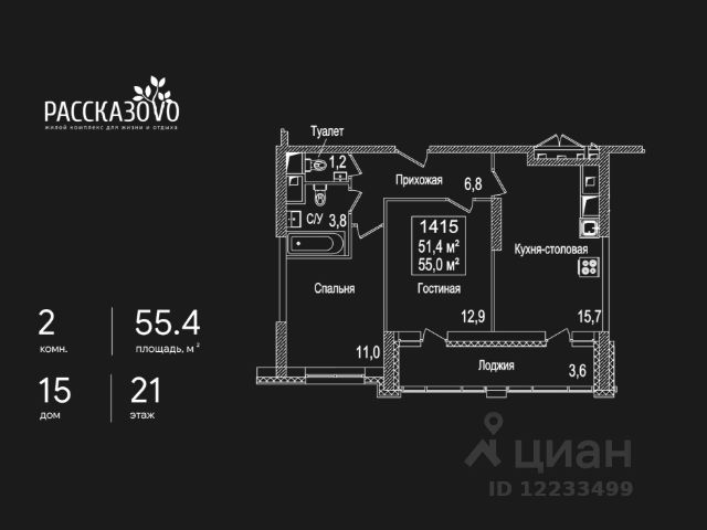 Открытие продаж готовых квартир! Продается двухкомнатная квартира без отделки в городе-парке "Переделкино Ближнее". Общая площадь квартиры - 52,6 кв. м, этаж 11 из 17. Тип дома - монолитный. Дом сдан! Корпус 1 состоит из 6 секций. Город-парк "Переделкино Ближнее" расположен в 8 км по Боровскому шоссе от МКАД на территории Новой Москвы. ТРАНСПОРТНАЯ ДОСТУПНОСТЬ: - в пешей доступности находятся метро "Рассказовка" и МЦД-4 "Мичуринец" - 14 минут на машине до станции метро "Филатов Луг" Сокольнической линии - 15 минут на машине до станции метро "Саларьево" Сокольнической линии - 35 минут на метро до центра Москвы ПРЕИМУЩЕСТВА 1 КОРПУСА: - квартиры у леса - высота потолков - от 3 метров - входные группы с безбарьерным доступом - в каждой секции - 2 лифта: 1 пассажирский, 1 грузовой - колясочные на 1 этаже - коммерческие помещения на 1 этаже - на -1 этаже - кладовые помещения - огороженный двор без машин - обеспеченность машино-местами: гостевой и многоуровневый паркинги рядом с домом - 5-10 минут пешком до школы и детского сада 17 фаза строительства уникальна своим расположением - рядом с Ульяновским лесопарком, парком "Рассказовка" и Большим Федосьинским прудом. ВНУТРЕННЕЕ БЛАГОУСТРОЙСТВО: В рамках 17 фазы для жителей предусмотрено создание пространства свободного от машин - благоустроенные огороженные дворы с современными детскими и спортивными площадками, разделенными на зоны по возрастам. РАЗВИТАЯ ИНФРАСТРУКТУРА В ОКРУЖЕНИИ: - открыты 2 школы на 3750 мест и строится 1 школа на 2100 мест - детский сад 1788 (всего в проекте 7 детских садов) - торговый центр "Сказка" - кафе, продуктовые магазины, аптеки, фитнес-центры, салоны красоты и пр. - в пешей доступности расположен благоустроенный парк "Рассказовка"