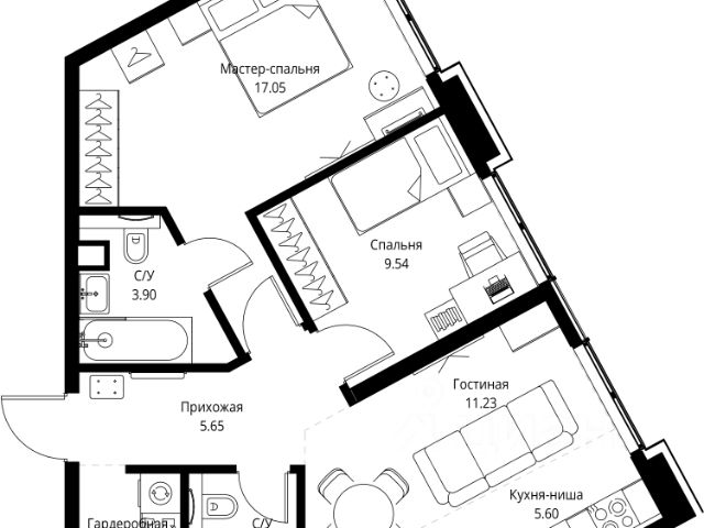 Площадь коридора: 9,9 м2