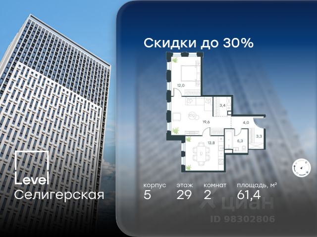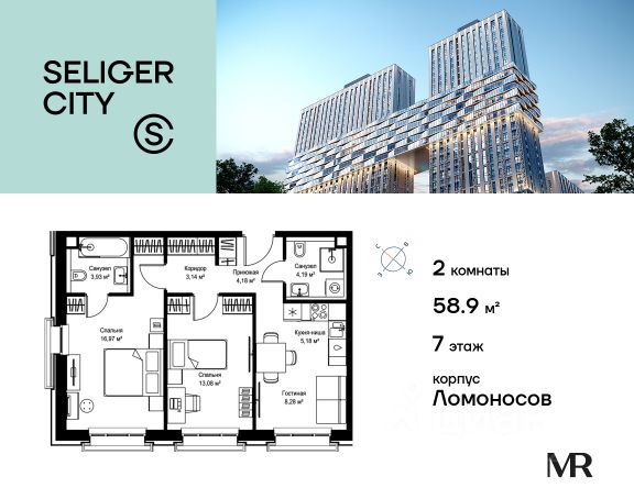 Прямая продажа от застройщика. Продаётся 2-комнатная квартира общей площадью 58.95 м² без отделки в ЖК "Селигер Сити" на 7-м этаже корпуса Ломоносов. Корпуса четвертой очереди ЖК "Селигер сити" названы в честь трех великих представителей науки и архитектуры, новаторское видение которых слишком смелое для своего времени нашло воплощение в уникальных домах жилого комплекса. Клубный 15-этажный корпус Ломоносов расположен во дворе 4 очереди. Фасад корпуса выполнен из темного кирпича с контрастным первым этажом. Квартиры верхних этажей имеют панорамные окна и балконы с декоративным ограждением. Часть квартир на втором этаже имеют открытые террасы. На первом этаже дизайнерские интерьеры лобби выполненные по проекту бюро Вlank Architects. На жилых этажах не более 5 квартир. Преимущества проекта: - 2 минуты пешком от метро "Селигерская" - Архитектурное решение от голландского бюро MLA + - Одна из самых больших придомовых территорий в Москве - Огороженная охраняемая территория, круглосуточное видеонаблюдение - Европейский подход к благоустройству от бюро Wowhaus: появится парадный бульвар, аллея с фонтаном и арт-объектом, что дополнит уже сформированное благоустройство: детские площадки для разных возрастов, площадки для воркаута, дорожки для бега и пеших прогулок, места для отдыха - Два детских сада, школа начальных классов и центр доп.образования - Искусственный пруд на территории комплекса с благоустроенной набережной и мостом - Продуманная концепция инфраструктуры: уютные кафе и рестораны, супермаркет, магазин фермерских продуктов, бытовые службы, салон красоты, детские сады - Ультрасовременные инженерные решения - Подземный паркинг с зарядными станциями для электромобилей, постами подкачки шин и келлерами - Лобби по индивидуальному дизайн проекту от европейского бюро Вlank Architects: лаунж-зоны, ресепшен, колясочная, помещение для мытья лап животным после прогулки - Надежный девелопер с опытом премиальных проектов MR Расположение комплекса: - 2 минуты от станции метро "Селигерская" - 7 минут на машине до станции метро "Окружная" - Предусмотрен удобный выезд в сторону ТТК (всего 9 км или 15 минут без пробок) - МКАД в 10 минутах на машине Компания MR предлагает своим клиентам специальные условия приобретения квартир в рамках программ ипотечного кредитования от банков-партнеров.