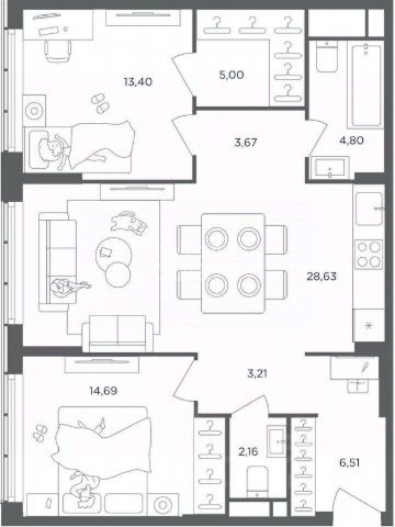 Купить 2-комнатную квартиру без ремонта на проезде Шмитовский в Москве
