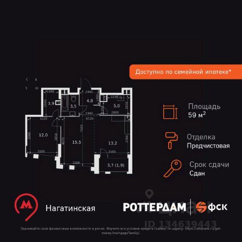 Прямая продажа от застройщика! Жилой Комплекс бизнес-класса на набережной возле Нагатинского причала. Продаётся 2-к квартира номер 1 общей площадью 46.3 кв.м. на 2-м этаже 29 этажного здания. Предчистовая отделка. Цена с учётом скидки. Особенности квартиры: - Организуем показ в удобное для вас время! - Мастер-зона с гардеробной. Просторное место для отдыха и удобного хранения вещей. - Линейная планировка - максимальная функциональность и удобство. - Линейная планировка - максимальная функциональность и удобство. - Увеличенное количество окон - дополнительное освещение и свежий воздух. - Постирочная - организуйте пространство для стирки и сушки вещей. - Гардеробная - удобство для хранения и организации вещей. - Ниша под шкаф - компактное и удобное место для вещей. - Лоджия - уютное место для отдыха и тишины. Квартира с предчистовой отделкой. Вам не придется заниматься черновыми и трудоёмкими работы, а чистовую отделку и дизайн - сделайте на свой вкус. Информация о комплексе: ЖК "Роттердам": идеальная транспортная доступность для любого настроения. Пешая доступность до метро, удобный выезд на Варшавское шоссе к ТТК и Садовому кольцу, а также живописная Нагатинская набережная с маршрутом до Кремля. Выбирайте метро, автомобиль, трамвай или велопрогулки вдоль реки - всё под рукой. Транспортная доступность: Всего в 5 минутах пешком до метро Нагатинская и 8 минутах от МЦК Верхние Котлы. Рядом Аэроэкспресс до метро Домодево. До ТТК 2,2 км и 4,9 км до Садового кольца. Внутренняя инфраструктура: ЖК "Роттердам": идеальный баланс работы и отдыха на Нагатинской набережной. Коворкинги, детские площадки и игровой центр для всей семьи. Рядом - 5 парков, спортивные и деловые центры в шаговой доступности. Архитектура сочетает высотные и малоэтажные здания без ощущения "каменных джунглей". Панорамные виды из окон верхних этажей и прямой выход к Москве-реке. Уединённость, безопасность и комфорт для тех, кто ценит личное пространство и время. Квартира с предчистовой отделкой - ваш дизайн без черновых работ