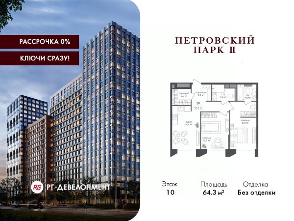 Рассрочка 0%. Первый платёж 30%, второй - не позднее 31.12.2026 г. Продаётся 2-комнатная квартира 67.2 кв.м. в ЖК "Петровский парк II" на 14-м этаже 24 этажного дома. ЖК "Петровский парк II" — жилой комплекс в Савёловском районе, где город ощущается иначе. Здесь история и масштаб Москвы не давят, а задают фон для спокойной, уверенной жизни рядом с центром. Это место, где статус читается не в громких формулировках, а в окружении, архитектуре и ощущении пространства. Коротко о важном: • Район с глубоким историческим контекстом и парковым окружением; • 5 минут пешком до метро "Динамо", рядом с деловой и культурной жизнью города; • Редкое сочетание: энергия мегаполиса и тишина зелёных аллей; • Архитектура от бюро Синтаксис с пластикой форм и индивидуальным характером фасадов; • Панорамные виды на город и зелёные массивы Петровского и Тимирязевского парков; • Закрытый двор без машин, вдохновлённый эстетикой дворцовых садов; • Просторные входные группы с высокими потолками и выверенной, респектабельной эстетикой; • Частный детский сад во дворе; • Подземная парковка и кладовые; • РГ-Девелопмент - ТОП-20 крупнейших застройщиков Москвы. Расположение комплекса формирует особое ощущение свободы выбора. Утром - прогулка по тенистым аллеям Петровского парка, днём - работа и встречи в деловых кластерах поблизости, вечером - культурные события, рестораны и городские пространства в нескольких минутах пути. Здесь расстояния измеряются не километрами, а шагами от дома. Архитектура "Петровского парка II" задумана как современный архитектурный акцент района и одновременно как уважительный диалог с исторической средой. Асимметричные объёмы, волнообразные элементы и игра света и тени создают выразительный, но сдержанный силуэт. Архитектура наполнена воздухом и визуальным ритмом, оставаясь спокойной и уверенной. Общественные пространства продолжают эту логику. Два парадных вестибюля с высокими потолками и благородной цветовой палитрой воспринимаются как пространства, где хочется замедлиться: встретить гостей, перевести дыхание после дня или просто почувствовать уровень среды, в которой вы живёте. Внутренний двор комплекса - это отдельный мир, закрытый от машин и городского шума. Продуманное благоустройство территорий отсылает к регулярным дворцовым садам: геометрия аллей, зелёные "кабинеты", цветники и камерные зоны отдыха создают разные сценарии для повседневной жизни. Здесь органично соседствуют детские игровые пространства, спортивные зоны и тихие места для отдыха. На территории комплекса расположены магазины, кафе и рестораны, а также частный детский сад, встроенный в общую структуру двора. Подземная парковка и кладовые поддерживают ощущение порядка и цельности пространства.
