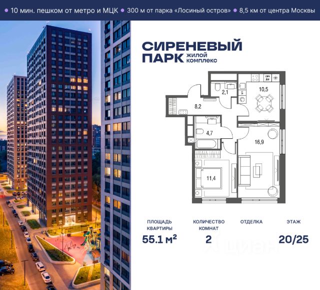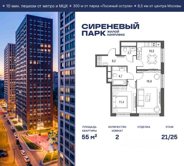 Продаётся просторная 2-комнатная квартира общей площадью 40 м² на 10 этаже в новом жилом комплексе "Сиреневый парк", расположенном в Восточном административном округе Москвы на улице Тагильская. Всего 10 минут ходьбы от станции метро "Бульвар Рокоссовского" и одноимённой платформы МЦК. Высококачественное монолитное строительство гарантирует сохранение тепла в доме, а наличие квартир с предчистовой и чистовой отделкой позволяет вам сэкономить время и сразу же переехать в свое жилье после покупки. Благодаря разнообразию планировок вы сможете выбрать идеальный вариант, соответствующий вашим предпочтениям и образу жизни. Предлагаются квартиры: - с просторными кухнями-гостиными, - с нишами для хранения вещей и отдельными гардеробными, - мастер-спальни с собственными санузлами, - большие комнаты с высокими потолками (2,9 м) и с увеличенными безопасными окнами (1,95 м) , которые наполнят ваш дом естественным светом; - с чистовой отделкой по двум дизайн-проектам на выбор; - с остекленными лоджиями и панорамными видами на лес. Каждая деталь в этом доме создана для вашего комфорта: - безбарьерная среда, - бесшумные скоростные лифты, - машиноместа в отапливаемом подземном паркинге и кладовые на -1 этаже с доступом из лифта, - развитая инфраструктура с супермаркетами, кафе, фитнес-клубами, салонами красоты и частным детским садом обеспечивает максимальное удобство жителям. В 300 метрах от ЖК расположен Национальный парк "Лосиный остров". Способы покупки: 100%, Рассрочка 0% от застройщика, Trade-in, Семейная ипотека без наценки, стандартная ипотека. Запишитесь на просмотр в офис продаж и получите свою персональную скидку по акции Назови свою скидку. ЖК "Сиреневый парк" — гармония в деталях, совершенство в каждом моменте. Застройщик проекта - AFI Development.