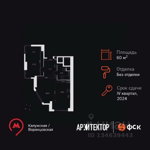 Прямая продажа от застройщика! Жилой Комплекс премиум-класса. Продаётся 2-к квартира номер 1252 общей площадью 43.3 кв.м. на 43-м этаже 47 этажного здания. Без отделки. Цена с учётом скидки. Особенности квартиры: 50% лотов - Планировка повышенной комфортности - Живите в квартире сейчас, платите потом - Лидер продаж - Двухуровневый двор без машин - Успей купить до повышения - Скоро ключи! 50% лотов - Идеальная планировка - Живите в квартире сейчас, платите потом - Лидер продаж - Двухуровневый двор без машин - Успей купить до отмены скидок - Скоро ключи! - Линейная планировка - максимальная функциональность и удобство. - Увеличенная ширина окна/окон - больше света и визуального простора. - Евроформат - просторное и удобное жилье с отличной планировкой. - Гибкая планировка - создайте пространство по своему вкусу. - Место для игры/занятия спортом - идеальное пространство для активных детей. - Можно оборудовать рабочее место - комфорт для работы и учёбы. - Просторная мягкая зона - комфорт и уют для отдыха всей семьи. - Возможность добавить спальное место - дополнительный комфорт для гостей. - Проходная кухня-гостиная - идеальное пространство для общения и готовки. - Ниша под шкаф - компактное и удобное место для вещей. - Лоджия - уютное место для отдыха и тишины. Информация о комплексе: Ощущение уютного дома должно начинаться с подъезда. Мы постарались предусмотреть все нюансы, чтобы наши лифты отвечали самым строгим современным требованиям. Вы всегда сможете увидеть, кто звонит в домофон. В каждой квартире подключен базовый пакет Умная квартира забудьте о беспокойстве о протечке; настройте свои сценарии управления техникой и электричеством; общайтесь сУмной квартирой голосом; Можете легко расширить базовый пакет и подключить дополнительные опции и устройства, чтобы из любой точки мира управляй работой бытовых приборов и систем. Наличие кладовых позволит вам поддерживать идеальный порядок и уют в вашей квартире! Под башнями расположился трехуровневый паркинг на 670 машино-мест с прямым доступом из квартир любого подъезда. По периметру паркинга предусмотрена гостевая парковка на 30 мест. Транспортная доступность: До метро "Калужская" - 12 минут пешком, 14 минут (7 км) до ТТК, 9 минут (6 км) до МКАД, 18 минут (11 км) до Садового кольца. В шаговой доступности до Воронцовского парка Внутренняя инфраструктура: В ЖК продуманная, богатая инфраструктура из трех зон. В основной входной группе сконцентрированы все блага современного мегаполиса: супермаркет, ресторан, фитнес-клуб, аптеки, салоны красоты и кофейня. Под шумные детские игры отведен нижний уровень, мы предусмотрели игры как для самых маленьких, так и для деток постарше. Для досуга взрослых есть места для спорта, занятий йогой, шезлонги и деревянные террасы для отдыха.