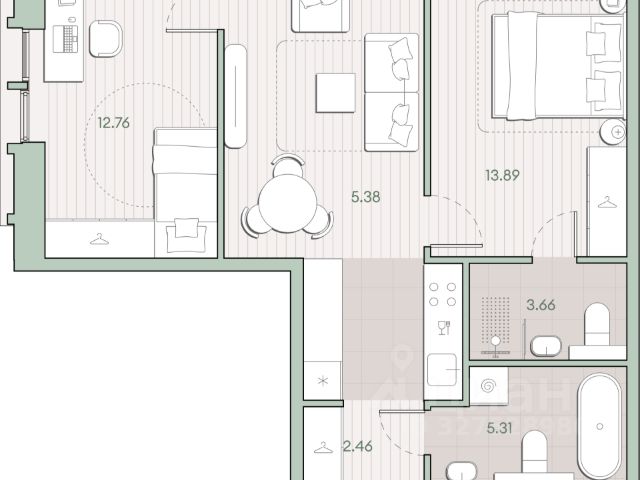 Предлагается 2к-квартира общей площадью 53.7 кв.м в ЖК SET.
