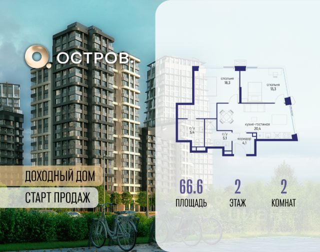 Продаётся 2-комн. квартира от застройщика: общая площадь 75.50 м², жилая м², кухня м², 8-й этаж, жилой квартал "Остров 12", корпус 2 (секция 1). Срок сдачи: 1 квартал 2029 года. . В жилой зоне 2 больших окна на одну сторону, хорошая инсоляция. Позвоните сейчас и забронируйте квартиру! ОСТРОВ от Донстрой - жилой комплекс на западе Москвы, в Мневниковской пойме. Уникальное преимущество комплекса - в том, что он обособлен от города рекой и природным парком (650 га). Благодаря природному окружению эта территория имеет лучший экологический рейтинг в столице. Кварталы ОСТРОВА объединены ландшафтным дизайном в единое пространство - с набережными и Центральным бульваром. На ОСТРОВЕ любые объекты, необходимые для полноценной жизни и отдыха, находятся на расстоянии 15-минутной прогулки. Торговый центр и супермаркеты, кафе и рестораны, фитнес, салоны красоты, школы и детские сады. А также крупнейший в Москве спортивный кластер.