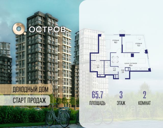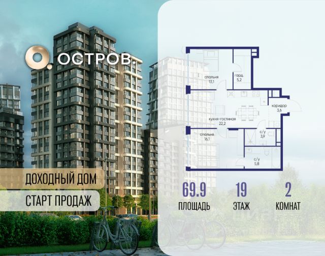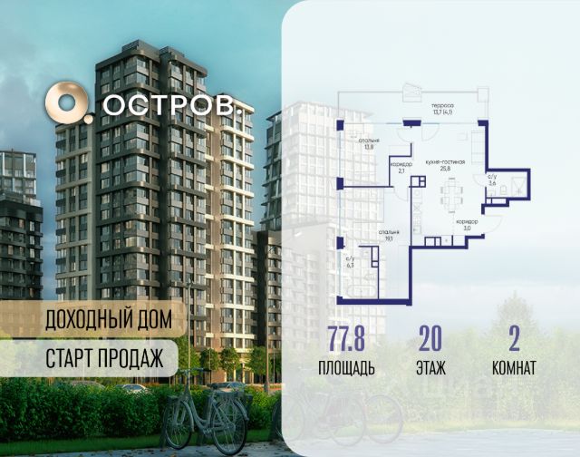 Продаётся 2-комн. квартира от застройщика: общая площадь 75.50 м², жилая м², кухня м², 8-й этаж, жилой квартал "Остров 12", корпус 2 (секция 1). Срок сдачи: 1 квартал 2029 года. . В жилой зоне 2 больших окна на одну сторону, хорошая инсоляция. Позвоните сейчас и забронируйте квартиру! ОСТРОВ от Донстрой - жилой комплекс на западе Москвы, в Мневниковской пойме. Уникальное преимущество комплекса - в том, что он обособлен от города рекой и природным парком (650 га). Благодаря природному окружению эта территория имеет лучший экологический рейтинг в столице. Кварталы ОСТРОВА объединены ландшафтным дизайном в единое пространство - с набережными и Центральным бульваром. На ОСТРОВЕ любые объекты, необходимые для полноценной жизни и отдыха, находятся на расстоянии 15-минутной прогулки. Торговый центр и супермаркеты, кафе и рестораны, фитнес, салоны красоты, школы и детские сады. А также крупнейший в Москве спортивный кластер.