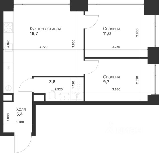 Продаётся 2-комнатная квартира в строящемся доме (Корпус 2), срок сдачи: IV-кв. 2027, общей площадью 57.4 кв.м., на 4 этаже. Многофункциональный жилой комплекс по адресу: г. Москва, вн.тер.г. муниципальный округ Текстильщики, проезд 1-Грайвороновский, з/у 2/2