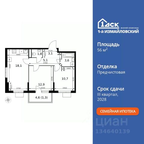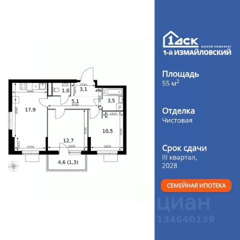 Прямая продажа от застройщика! Жилой Комплекс Комфорт класса. Продаётся 2-к квартира номер 304 общей площадью 51.5 кв.м. на 3-м этаже 12 этажного здания. Предчистовая отделка. Цена с учётом скидки. Особенности квартиры: - Организуем показ в удобное для вас время! - Линейная планировка - максимальная функциональность и удобство. - Увеличенное количество окон - дополнительное освещение и свежий воздух. - Евроформат - просторное и удобное жилье с отличной планировкой. - Гибкая планировка - создайте пространство по своему вкусу. - Можно оборудовать рабочее место - комфорт для работы и учёбы. - Балкон - открытое пространство для отдыха. - Большой балкон - больше пространства для вашего отдыха. Квартира с предчистовой отделкой. Вам не придется заниматься черновыми и трудоёмкими работы, а чистовую отделку и дизайн - сделайте на свой вкус. Информация о комплексе: ЖК "1-й Измайловский" в восточной части Москвы: идеальное место для жизни в окружении 14 000 гектаров леса. Наслаждайтесь лыжными прогулками зимой и пробежками летом в сиреневом саду и лесопарках. Комплекс отгорожен от шоссе застройкой первой линии и садами здоровья. Из окон открываются виды на парк "Лосиный остров" и зеленые дворы. Близость к природе и спортивным объектам создаёт атмосферу здорового образа жизни. Транспортная доступность: Не более 2,5 км до станций метро "Щёлковская" и "Черкизовская" и МЦК "Локомотив". Щёлковское шоссе соединяет квартал с Северо-восточной хордой и МКАД, Центральным автовокзалом и Восточным железнодорожным вокзалом. Две автобусные остановки в паре минут ходьбы и 11 маршрутов общественного транспорта. На автомобиле 3 минуты до СВХ 12 минут до ТТК 15 минут до Садового кольца Внутренняя инфраструктура: ЖК расположен в историческом районе Москвы с развитой инфраструктурой. В шаговой доступности: 6 детских садов (включая собственный на 125 мест), 3 школы, поликлиники, торговые центры и парки. Проект создан для здорового образа жизни: рядом стадионы, спортивные объекты для футбола, баскетбола и конного спорта, а также более 30 км беговых и велодорожек. Всё для активной жизни в окружении зелени и современной инфраструктуры. Квартира с предчистовой отделкой - ваш дизайн без черновых работ