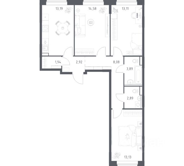 Предусмотрена также меблировка ванной комнаты и прихожей.