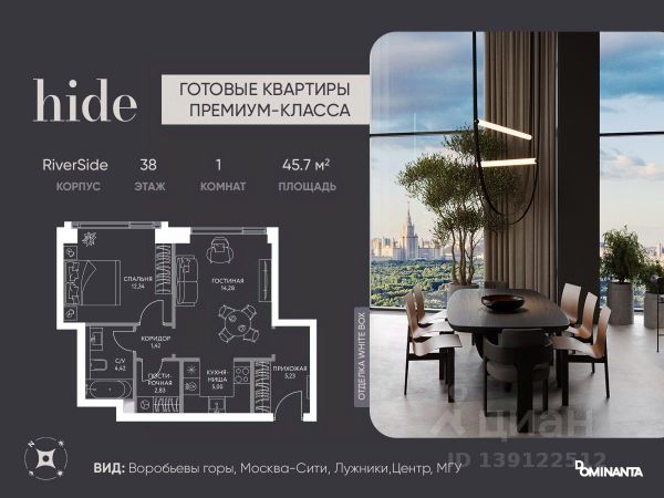 ОТ СОБСТВЕННИКА! Видовая квартира, НЕ апартаменты, с видом на Московский университет и Хамовники с собственной территорией в ЖК Hide премиального класса. Башня West Dale.