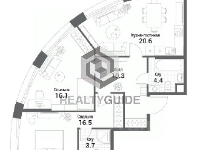 Квартира находится в корпусе 1. Дом монолитный, одноподъездный, высотой 20 этажей. На этаже 7 квартир. В подъезде 2 пассажирских и 1 грузовой лифт. На сегодняшний день строительство окончено, дом сдан в 1 квартале 2025 года.