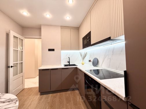 На кухне дизайнерский ремонт. Полностью выровнены стены, проложена новая электропроводка, заменены батарея и подоконник, установлен кухонный гарнитур с техникой (посудомоечная машина и духовой шкаф), подключен фильтр глубокой очистки воды. Кухонный фартук выложен плиткой Керама Марацци, на полу ламинат с водонепроницаемой защитой . Есть несколько источников освещения, включая светодиодную ленту над столешницей.