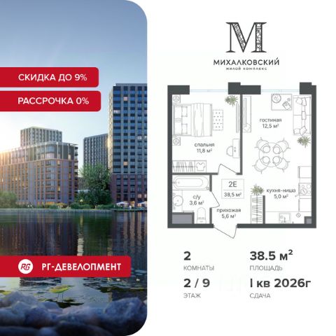 Ипотека для каждого! Полная стоимость кредита от 11,578% до 22,490%. Ставка от 0,11% в АО "Альфа-Банк" фиксируется на 1 год с даты заключения кредитного договора, далее полная стоимость кредита от 25,819% до 28,767% ставка 21,59% до окончания срока кредитования. Первоначальный взнос — от 20% от стоимости квартиры. Срок кредитования — от 3 до 30 лет. Скидка 9% при покупке квартиры! Цена указана с учетом максимального размера скидки. Продаётся 2-к квартира 46,6 кв.м. в ЖК "Михалковский" на 5-м этаже 20 этажного дома. Компания "РГ-Девелопмент" предоставляет скидки на квартиры в жилом комплексе. Акция действительна с 12.09.24 г. до 31.10.25г. включительно. Чтобы воспользоваться предложением, необходимо подписать договор на приобретение недвижимости до 31.10.25г., включительно. Действует программа "Растет семья - растет и квартира". Прямая продажа от застройщика! Старт продаж новых корпусов. Квартиры без отделки. Срок сдачи 1 кв. 2026 г. Особенности проекта: Завораживающие виды Красивое благоустройство Уникальная локация для Москвы (рядом Головинский парк, пруды, усадьба Михалково) Рядом с центром В проекте присутствует: архитектура голландского бюро MLA+, зеленые зоны, транспортная доступность, благоустроенная территория, подземный паркинг, детский сад и выход на Головинский парк с пятью прудами. Название комплекса указывает на одну из его черт - соседство с имением Михалково. Позвольте себе жить в месте, где проводили свой досуг династии Дашковых и Паниных. 2-комнатная квартира элитные в районе Головинский в Москве.