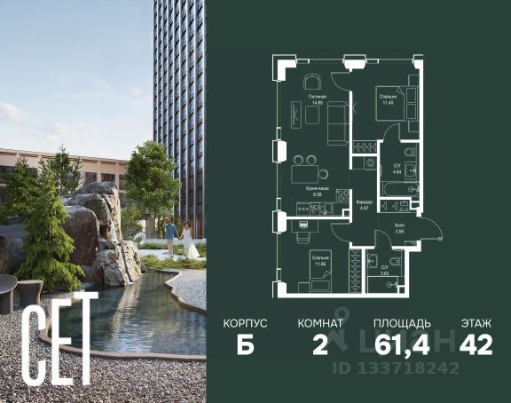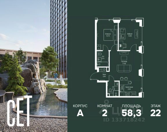 Прямая продажа от застройщика. В ЖК Сет продается 2-комнатная квартира площадью 51.28 м², расположенная в корпусе А, на 31 этаже 52 этажного дома. Сет имеет стратегически выгодное расположение в ЗАО, в районе с большой историей и блестящим будущим: между природной зоной долины реки Сетунь и Кутузовским проспектом. В рамках возведения первой очереди предусмотрено три корпуса высотой 18, 45 и 59 этажей. На верхних этажах спроектированы общедоступные смотровые площадки с панорамным обзором на центр столицы. Преимущества проекта: • Функциональные планировочные решения • Контроль проникновения через входную дверь • Система управления освещением и температурой в квартире • Система защиты от протечек с функцией перекрытия воды • Вход в подъезд по биометрическим считывателям Face ID • Скоростные лифты • Двухуровневый подземный охраняемый паркинг на 495 машино-мест Застройка Сет включает в себя не только жилые корпуса, но и инфраструктурные объекты. Все необходимое для повседневного комфорта будет расположено в шаговой доступности: • Фитнес-Клуб с бассейном • Ведущая городская школа, детский сад и школа искусств • Центр культуры и досуга • Медицинский центр • Кафе и рестораны Расположение комплекса: Пешком: • Метро "Давыдково" - 17 минут • Парк "Долина реки Сетунь" - 3 минуты • Открытие новых станций метро в шаговой доступности в будущем Инфраструктура: Разнообразить свой день резиденты Веер смогут также проводя больше времени на свежем воздухе. Двор разделен на 4 зоны разных эмоций и действий, которые пересечены и соединены веерными прогулочными маршрутами: • Спортивная площадка устроена в глубине "Кленовой рощи" • В "Чайном домике" будет создан навес с утеплением для отдыха в любую погоду • Площадки для детей воплотятся в "Волшебный лес" с цветами, зеркалами и световым дизайном • "Центральная площадь" устроена у водного оазиса живописного пруда. На машине: • "Москва-Сити" - 15 минут • Садовое кольцо - 20 минут • ТЦ "Океания" - 8 минут • ТЦ "Времена года" - 13 минут • Сколково - 12 минут • Гребной канал - 17 минут Компания MR предлагает своим клиентам специальные условия приобретения квартир в рамках программ ипотечного кредитования от банков-партнеров.