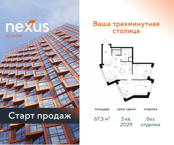 Продажа от застройщика. О проекте: В основе NEXUS by Akvilon лежит принцип трехминутного города, где вся жизнь: работа, отдых, здоровье, общение и культура сосредоточены в шаговой доступности. Он не просто экономит время, а кардинально перераспределяет его. В этих условиях главным логистическим узлом становится лифт, который в считанные секунды переносит из квартиры в собственный фитнес-рум, панорамный двор или современный коворкинг. Здесь вы сами решаете: оказаться в эпицентре событий, чувствуя пульс мегаполиса, или наслаждаться тишиной и приватностью своего пространства. И главное — вы можете переключаться, находя идеальный баланс каждый день. NEXUS by Akvilon - ваша трехминутная столица! Транспортная доступность NEXUS дарит независимость от расстояний и логистики. Ваше время теперь принадлежит только вам меньше минуты до метро Молодежная 2 минуты до Рублевского шоссе 10 минут до Проспекта Багратиона 15 минут до Москва-Сити 10 минут до МКАД 20 минут до ТТК Архитектура 46-этажная башня станет новой архитектурной доминантой, символизирующей динамику и технологичность современной жизни.Комбинация алюминиевых кассет, стеклофибробетона и витражного остекления фасада создает монументальную оболочку, а теплая цветовая гамма добавляет масштабной форме визуальной теплоты. Три разных по характеру стороны башни — от строгой "зубчатой" геометрии до живописных эркеров — создают многогранный, ритмичный образ, дополняемый невесомыми балконами со стеклянным ограждением. Архитектура проекта живет в диалоге с городом: променад вдоль парящего стилобата со стрит-ретейлом становится естественным продолжением общественного пространства. Планировки в концепции Разумные метры Мы создали квартиры, где пространство работает на ваш комфорт. В основе концепции "Разумные метры" правильная геометрия помещений и тщательно продуманные эргономичные решения. - Высота потолков до 3,55 метров - Многообразие планировок: от студий до четырехкомнатных квартир классического и евро-формата - Многофункциональные пространства: кухни-гостиные для приема гостей и зонированные мастер-спальни - Продуманная инфраструктура быта: отдельные постирочные и гостевые санузлы - Удобные системы хранения: встроенные ниши и гардеробные зоны - Уникальные форматы: пентхаусы, комнаты с двумя окнами, угловое панорамное остекление - Возможность открытия окон на всех высотах Для студий и однокомнатных квартир мы предлагаем готовое решение — отделку White box, позволяющую сразу приступить к чистовому ремонту на ваш вкус. Для остальных планировок предусмотрена черновая отделка, чтобы воплотить все интерьерные пожелания. Здесь пространство адаптируется под ваш образ жизни, а не вы подстраиваетесь под планировку. Приватное благоустройство Скрытый на виду панорамный двор-терраса, расположенный на высоте 7 метров, объединил внутреннюю камерность и внешнюю динамику городской жизни. - Многоуровневое озеленение с всесезонными композициями, сохраняющими декоративно