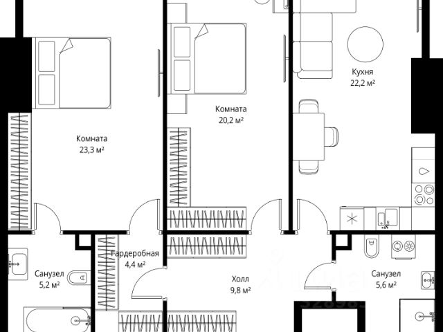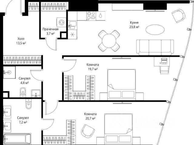 Старт продаж! Квартиры в Москва-Сити в самой инновационной башне Оне. В продаже 2-комнатная квартира площадью 79.00 м² на 36-м этаже. Новый современный жилой комплекс премиум-класса Оне расположен в самом сердце деловой жизни столицы — в Москва-Сити, где захватывающая дух архитектура встречается с безупречным уровнем комфорта. Оне находится в Пресненском районе, в пешей доступности от станции метро "Деловой центр". Проект был разработан выдающимся архитектором Сергеем Кузнецовым при участии международного бюро Gensler. Уникальная скульптурная форма башни, вдохновленная лентой Мебиуса, создает новый узнаваемый силуэт делового центра и задает непревзойденный стандарт вертикальной жизни. По замыслу архитекторов, жилой комплекс представляет собой две вертикальные башни, соединенные в нижней и верхней точках. На 85 этаже расположен Sky Garden — самый высокий в Европе парк с оазисом природы и секретным садом в облаках, а на 83 этаже парит стеклянный мост Sky Bridge с панорамными видами. Важнейшей особенностью комплекса является его всесторонняя инфраструктура по принципу All-in-Оне: закрытый Клуб с лаунжами, приватным кинотеатром, бильярдной, рабочими зонами и фитнесом. Здесь же расположена торговая галерея бутиков и премиальный гастро-кластер, концепцию которого разработал известный ресторатор Александр Сысоев. Особенности комплекса: - Эксклюзивная архитектура от главного архитектора Москвы - Самый высокий в Европе небесный сад Sky Garden на 85 этаже - Панорамное остекление от пола до потолка во всех квартирах - Smart-инженерия и сервис уровня пятизвездочного отеля - Приватная Клубная инфраструктура All-in-Оне - Трехуровневый паркинг с зарядными станциями для электрокаров - Круглосуточная безопасность и консьерж-сервис Расположение комплекса: - Пешая доступность от станции метро "Деловой центр" - 2 минуты до Экспоцентра - 5 минут до Дома Правительства - 7 минут до Кутузовского проспекта