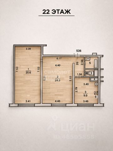 10 минут от Москва-Сити В продаже квартира площадью 60.22 м² без отделки на 13 этаже 46 этажного дома. Квартира расположена в корпусе Лео. Джойс — это премиальный жилой комплекс от девелопера MR в районе Хорошёво-Мнёвники. Он включает несколько эффектных небоскрёбов высотой 47-56 этажей, эксклюзивные форматы квартир с панорамным остеклением, подземный двухуровневый паркинг на 239 м/м, собственную приватную инфраструктуру, закрытый ландшафтный парк 2,3 Га с функциональным зонированием и охраняемой территорией. Над проектом работали лучшие команды международных агентств с многолетним опытом: Genpro, S&P, iLight International и другие. Расположение Пешком: - 5 мин. ст. МЦК "Хорошёво"; - 15 мин. ст. м. "Народное ополчение"; - 10 мин. ст. метро "Звенигородская" с 2027 года; - 20 мин. причал "Карамышевский". На автомобиле: - 3 мин. до Звенигородского шоссе; - 5 мин. до ТТК: - 8 мин. до Серебряного бора и Строгинского затона - 10 мин. до ММДЦ "Москва-Сити"; - 40 мин. до аэропорта "Шереметьево"; Благоустройство - собственный ландшафтный парк 2,3 Га; - парк скульптур от Cosmoscow; - консьерж-сервис 24/7; - сервисный лифт и вход; - игровые и спортивные площадки; - коворкинг с библиотекой; - лаунж-зона с камином; - игровые комнаты для детей и Клуб для подростков с оборудованием для видеоигр; - спортивная студия для индивидуальных тренировок; - гостиная с мини-кухней; - зоны для выгула собак; - подогрев пешеходных дорожек в зимний период; - автополив зелёных насаждений; - премиальные рестораны, кафе, химчистки, аптеки и супермаркеты. Окружение - 4 парка: Покровское-Стрешнево, Филёвский парк, Серебряный бор и Берёзовая роща; - 15 общеобразовательных заведений, в том числе две школы из самых лучших в Москве: государственная школа "Интеграл" и частная "Хорошкола"; - спортивное сооружение "ВЭБ Арена", домашний стадион ФК ЦСКА; - крупнейший в Европе торгово-развлекательный центр "Авиапарк".
