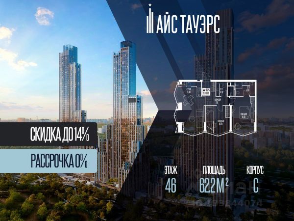 Беспроцентная рассрочка от застройщика. Выгода до 14%. Продается 2-комнатная квартира на 44 этаже, 76.9 кв.м. площади в жилом комплексе "Айс Тауэрс", который расположен в Западном административном округе Москвы. Архитектура комплекса отличается панорамным остеклением фасадов. Квартиры продаются с опциональной предчистовой отделкой. В комплексе установлены системы видеонаблюдения, климат-контроля и элементы системы "умный дом". Территория и расположение На придомовой закрытой территории обустроены детские площадки, спортивные площадки и места для отдыха. Комплекс граничит с особо охраняемой природной зоной, что обеспечивает доступ к прогулочным маршрутам. Инфраструктура комплекса • Общественное пространство с универсальными залами, коворкингом и библиотекой. • Помещения для детских занятий и мастер-классов. • Предусмотрены кабинеты для приема специалистов (стилистов, массажистов). В комплексе работают круглосуточная консьерж-служба и служба доставки (внутри комплекса). Доступны услуги парковки и помощи с багажом. Для повседневного удобства предусмотрены: • Колясочные и велосипедные хранилища. • Душевые для домашних животных и груминг. • Мобильное приложение для управления сервисами.