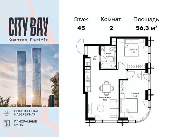 Продаётся 2-комнатная квартира 57 м². В жилом районе ALIA на 2-м этаже 18-этажного дома. Жилой район ALIA — это дома бизнес-класса у слияния Москвы-реки и Сходни. ALIA находится в Покровском-Стрешневе, экологически чистом районе на престижном северо-западе столицы. Район возводится на бывшей территории Тушинского аэрополя, где никогда не было промышленного производства. ALIA — это район разностороннего развития, спроектированный по принципу WORK.LIVE.PLAY.LEARN. Это "15-минутный город", где вся необходимая для комфортной жизни инфраструктура — на расстоянии приятной прогулки. У района удобное расположение: отсюда меньше 10 минут пешком до станций метро "Спартак" и "Тушинская" и всего полчаса на автомобиле до центра города или аэропорта Шереметьево. Архитектурную концепцию ALIA разработало бюро SOM (Skidmore, Owings & Merrill), авторы знаменитой "Бурдж-Халифа". В ALIA больше 140 планировочных решений, среди которых — редкие для Москвы форматы: квартиры с окном в ванной, пентхаус, сити-юниты и таунхаусы. Почти половина территории района отдана под благоустройство. В ALIA три парка: Линейный парк с кафе и магазинами, Центральный парк с амфитеатром, сухим фонтаном и большим плейхабом для детей всех возрастов и Прибрежный парк на собственной набережной, одной из самых длинных в Москве. В каждом урбан-блоке — закрытый внутренний двор с гипоаллергенными растениями и детской площадкой. В лобби каждого жилого корпуса в ALIA оборудована зона ожидания, колясочная, гостевой санузел и лапомойка для домашних животных. За стойкой ресепшена резидентов и их гостей встречает консьерж. Центральное лобби урбан-блока — это стильное общественное пространство с коворкингом, лаундж-зоной и кофе-пойнтом. Это "вторая гостиная" жителей урбан-блока и одно из мест, где формируется комьюнити ALIA. Два ключевых объекта инфраструктуры в ALIA — это спорткомплекс "Чкалов Арена", где представлены 25 видов спорта, и самый большой в стране бизнес-парк класса A, благодаря которому району обеспечено быстрое развитие.