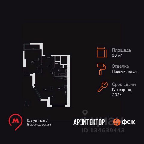 Прямая продажа от застройщика! Жилой Комплекс премиум-класса. Продаётся 2-к квартира номер 1267 общей площадью 43.3 кв.м. на 46-м этаже 47 этажного здания. Без отделки. Цена с учётом скидки. Особенности квартиры: - Идеальная планировка - Лидер продаж - Двухуровневый двор без машин - Идеальная планировка - Скоро ключи! - Организуем показ в удобное для вас время! - Линейная планировка - максимальная функциональность и удобство. - Увеличенная ширина окна/окон - больше света и визуального простора. - Евроформат - просторное и удобное жилье с отличной планировкой. - Гибкая планировка - создайте пространство по своему вкусу. - Место для игры/занятия спортом - идеальное пространство для активных детей. - Можно оборудовать рабочее место - комфорт для работы и учёбы. - Просторная мягкая зона - комфорт и уют для отдыха всей семьи. - Возможность добавить спальное место - дополнительный комфорт для гостей. - Проходная кухня-гостиная - идеальное пространство для общения и готовки. - Ниша под шкаф - компактное и удобное место для вещей. - Лоджия - уютное место для отдыха и тишины. Квартира без отделки. Чистый холст для воплощения интерьера вашей мечты. Информация о комплексе: Уют начинается с подъезда: современные лифты, видео домофон и умный дом в каждой квартире с защитой от протечек и голосовым управлением. Подземный паркинг на 670 мест с прямым доступом и гостевой зоной. Кладовые для идеального порядка. Транспортная доступность: До метро "Калужская" - 12 минут пешком, 14 минут (7 км) до ТТК, 9 минут (6 км) до МКАД, 18 минут (11 км) до Садового кольца. В шаговой доступности до Воронцовского парка Внутренняя инфраструктура: В ЖК продуманная, богатая инфраструктура из трех зон. В основной входной группе сконцентрированы все блага современного мегаполиса: супермаркет, ресторан, фитнес-клуб, аптеки, салоны красоты и кофейня. Под шумные детские игры отведен нижний уровень, мы предусмотрели игры как для самых маленьких, так и для деток постарше. Для досуга взрослых есть места для спорта, занятий йогой, шезлонги и деревянные террасы для отдыха. Квартира без отделки - чистый холст для вашего интерьера.