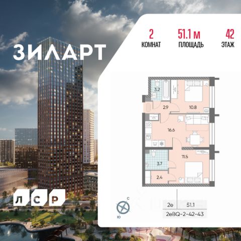 Продается 2-комн. кв-ра площадью 56.80 кв.м на 6 этаже 43 этажного монолитно-кирпичного дома в ЖК "ЗИЛАРТ" от Группа ЛСР. ЗИЛАРТ СПАРК — новый дом бизнес-класса в жилом квартале "ЗИЛАРТ" высотой 150 метров. Он сочетает в себе современную архитектуру, передовые технологии и восхитительные виды на ландшафтный парк "Тюфелева Роща" и бульвар Братьев Весниных. Близкое расположение к музейно-выставочному центру "Коллекция" и концертному залу создает вдохновляющую атмосферу места, где переплетаются жизнь и творчество. ЗИЛАРТ СПАРК расположен в престижном Даниловском районе. В пешей доступности находятся несколько станций метро: "Тульская", "Автозаводская", "Технопарк" и недавно открытая "ЗИЛ" Троицкой линии, с которой можно пересесть на одноименную станцию МЦК, а позже и на станцию "ЗИЛ" Бирюлевской линии (открытие запланировано на 2028 год). В пешей доступности есть вся необходимая инфраструктура: супермаркеты, салоны красоты, уютные кафе и рестораны, спортивные студии, места для досуга, отдыха и развлечений. На благоустроенной набережной Марка Шагала располагается действующий причал "ЗИЛ". Жилой комплекс даст возможность прогуляться по живописной набережной, просторному парку и бульвару. Любители здорового образа жизни и спортсмены оценят современные площадки для спортивных игр и фитнес-центр с бассейном. Молодые родители будут спокойны за настоящее и будущее детей благодаря современной образовательной среде. В "ЗИЛАРТе" расположена одна из самых больших школ России на 2,5 тысячи учеников.