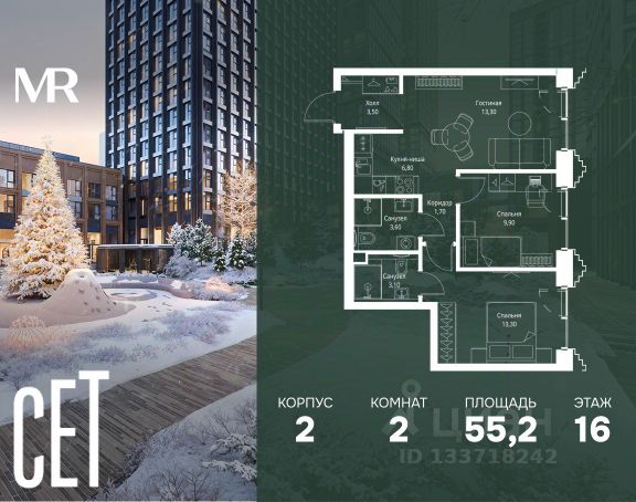 Старт продаж новой очереди! Продаётся 2-комнатная квартира общей площадью 74.07 м² без отделки в ЖК Веер на 6-м этаже 25 этажного дома. Веер.2 — вторая очередь футуристичного квартала бизнес-класса Веер. Это новая экосистема в престижном Западном округе Москвы, поражающая масштабностью внутренней инфраструктуры. ЖК находится всего в 5 минутах от Кутузовского проспекта и в 15 минутах от Сколково. Ансамбль из четырех стеклянных башен с доминантой в 237 метров разработан по принципу современного урбанизма и выражен в лаконичных объемах — параллелепипедах со сглаженными углами, которые придают зданиям утонченный вид. Расположение и транспортная доступность: • Образовательный комплекс в составе топовой школы, состоящий из двух зданий: основное на 1500 школьных и 450 дошкольных мест, отдельное здание детского сада на 300 мест. • Парк "Долина реки Сетунь" площадью более 700 гектаров • Рядом МГУ, МГИМО, РАНХиГС и Академия ФСБ • 15 минут по Кутузовскому проспекту до ужина в центре с видом на Москву-реку • 18 минут пешком до м. "Давыдково" • Открытие новых станций метро в шаговой доступности в будущем Инфраструктура: Двор в Веер.2 — это ассиметричные холмы, каменные "лабиринты", зеленые ковры и хвойные островки с единой живой экосистемой. Здесь есть все: • Павильон умиротворения Место отдыха под навесом в спокойной части двора, окруженное деревьями. • Активная тропа Тактильная дорога из камней разного диаметра для расслабляющих прогулок. • Бизнес-гарден Оборудованное пространство для работы на свежем воздухе со столом и встроенными розетками. • Детская площадка Двухуровневая площадка "Ботаника" с песочницей, переговорной трубой и горкой "Дружба". Компания MR предлагает своим клиентам специальные условия приобретения квартир в рамках программ ипотечного кредитования от банков-партнеров. Элитное жилье - 2-комнатная квартира в районе Можайский в Москве.