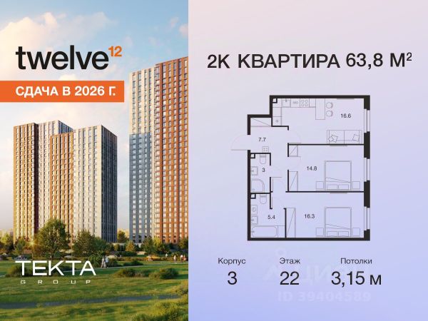 Рассрочка 0% с платежом от 120 000 ₽ в месяц. Сдача уже в 2026 году 2-комн. квартира в ЖК "Твелв" на 12 этаже в 34 этажном здании Корпус 1. Общая площадь: 62.3 кв.м., жилая: 30.10 кв.м. Высота потолков 3.00 м. ЖК Твелв от застройщика Текта Групп — это новый уровень жизни в районе Нагорный в 3-х минутах от станции метро. Проект представляет собой воплощение современной концепции комфортной жизни, где функциональность органично сочетается с эстетикой. Архитектура Твелв создает атмосферу, вдохновляющую на успех и располагающую к позитивным эмоциям. Дом, в котором каждый день будет наполнен уютом, а не рутинной работой и дорожными пробками. Твелв предлагает своим жильцам продуманные планировки, возможность объединения квартир, а также увидеть красоту города через угловое остекление увеличенных окон. Особое внимание уделено комфорту жителей: благоустроенная территория, зеленые насаждения, детские площадки, парковка. ЖК Твелв — это больше, чем просто жилье: это атмосфера умиротворенности, комфорта и гармонии. 2-комнатная квартира элитные в районе Нагорный в Москве.
