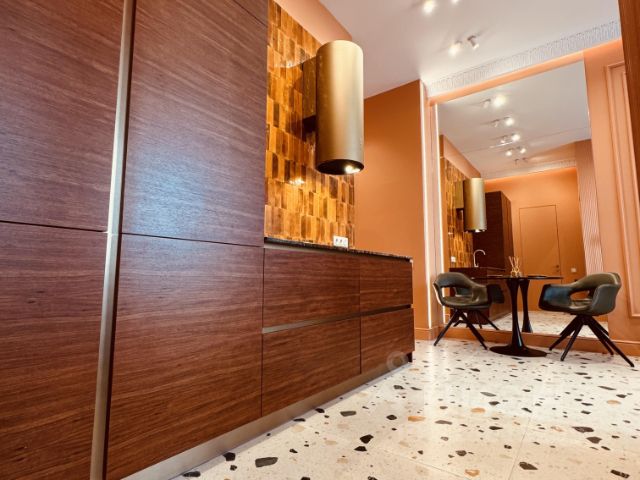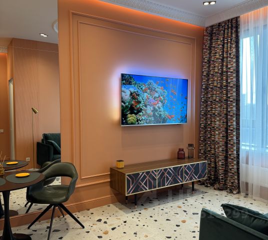 Квартира состоит из - уютная изолированная спальня, с большим высоким гардеробом, разными видами освещения; светлый зал/студио с полноценным раскладывающимся диваном, с отдельностоящей обеденной зоной; зона кухни с мебельным гарнитуром класса люкс, выполнена из натурального шпона, включая фурнитуру Blum, со встроенной качественной техникой известных брендов - встроенный холодильник, варочная панель, дизайнерская вытяжка подключенная напрямую в вытяжную вентиляцию, встроенная стиральная машина, столешница выполнена на заказ из натурального мрамора Imperador Gold, стеновая панель из штучной итальянской плитки; ванная комната выполнена с использованием итальянской эксклюзивной штучной плитки, установлен тропический душ, встроенная сантехника, есть душ биде. Телевизор Philips со Смарт-ТВ высокого разрешения 4К, и умной подсветкой Ambilight, установлен высокоскоростной интернет, умное освещение, система кондиционирования Electrolux. Дорогостоящая мебель, предметы интерьера и дизайна, гипсовая лепнина, итальянские светильники. Для хранения вещей предусмотрены - гардеробная, полноценный шкаф при входе, также большой шкаф в спальне, шкаф в санузле, кровать с подъемным механизмом. В ЖК есть двухуровневая парковка, и вся необходимая инфраструктура (магазины, супермаркеты, открывается фитнес-клуб, кафе, рестораны, и многое другое)