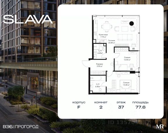 Квартиры премиум-класса в жилом комплексе SLAVA у м. "Белорусская" от застройщика. В продаже 2-комнатная квартира площадью 70.40 м² на 4-м этаже корпуса G. Новый современный жилой комплекс премиум-класса SLAVA расположен в той части центра, где традиция соединяется с прогрессивными городскими тенденциями. Здесь историческая Москва встречается с передовым миром. Популярные театры и старинные церкви соседствуют с современным деловым кварталом и гастрономическим кластером Депо. SLAVA находится всего в 5 мин. пешком от м. "Белорусская", по-новому открывая Ленинградский проспект. Проект был разработан легендарным архитектором Хельмутом Яном, основателем чикагского архитектурного бюро Jahn. Его работы отмечены множеством наград и реализованы в мегаполисах по всему миру. По замыслу архитекторов, жилой комплекс образуют четыре высотные башни, соединенные одноэтажным стилобатом "Хронограф". Здесь, на первом уровне, открытые и закрытые общественные пространства: небольшие сады, места для встреч и отдыха, кафе, рестораны, магазины, спортивный центр и даже выставочное пространство. Важнейшей особенностью пространства является его всесезонность: благодаря правильной организации, ландшафтному дизайну, инженерной инфраструктуре здесь будет уютно и в жару, и в xолод, и в ненастье. На втором уровне стилобата расположится приватный парк для жильцов. Особенности комплекса: - Идеальное расположение в престижной части Москвы (10 мин. от Кремля) - Панорамное остекление - Подземный паркинг с дизайнерской отделкой - Современные инженерные системы - Продуманная внутренняя инфраструктура - Приватный сад 7700 кв.м. Расположение комплекса: - 5 минут до станции метро "Белорусская" - 3 минуты до ТТК - 8 минут до "Садового кольца" Компания MR предлагает своим клиентам специальные условия приобретения квартир в рамках программ ипотечного кредитования от банков-партнеров.