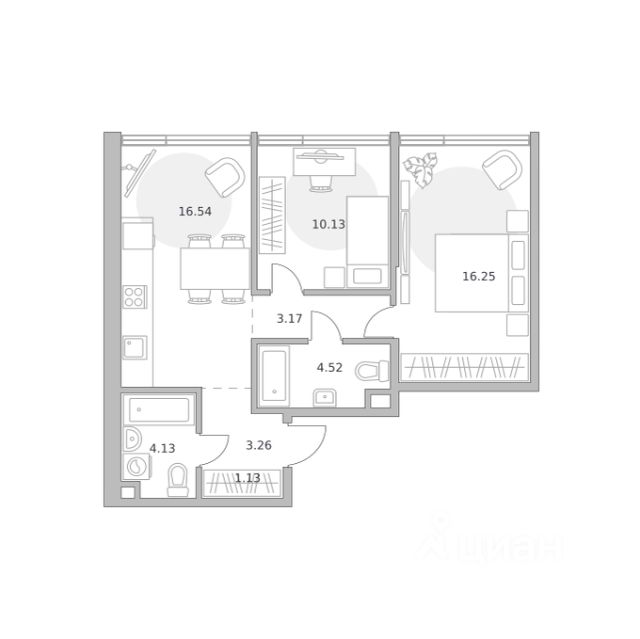 Продаётся 2-комнатная квартира 1755, площадью 61,98 м², на 13 этаже в ЖК "Мнёвники от Гранель" корпус 1. Стоимость — от 29181057 руб. Квартира без отделки, планировка односторонняя, окна во двор.