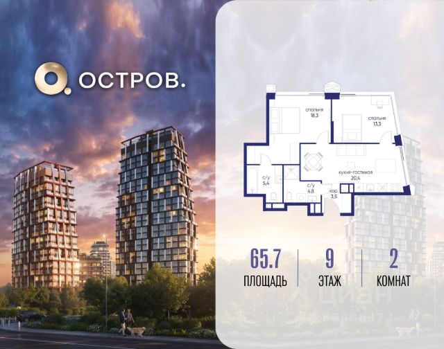 ID 204. Предлагается к продаже квартира 42.8 м2 с премиальной отделкой "под ключ" на 6/13 этаже ЖК "Остров" (1-й квартал).