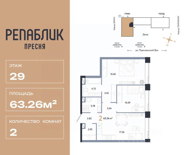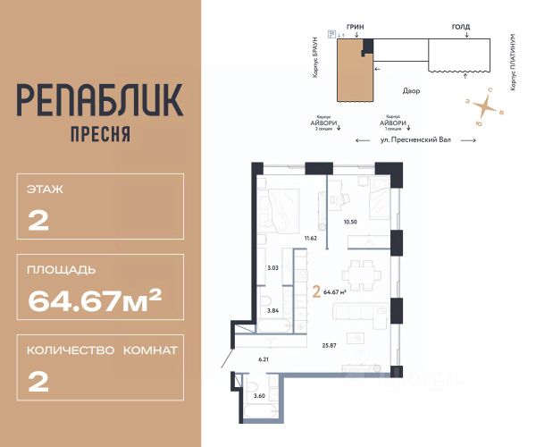 Рассрочка 0% с первым взносом от 20%, ипотека с субсидией или наличные. Подберём способ оплаты индивидуально. Продается 3комнатная квартира на 2 этаже от застройщика Страна Девелопмент. Площадь квартиры 65.68 кв. м. Дизайн-квартал "Republic" — новый проект премиум-класса в Москве от федерального застройщика "Страна Девелопмент". ЦАО, Пресня, 7 мин. от метро "Белорусская". 10 жилых башен и 4 восстановленных здания локомотивного депо образуют уникальное пространство. "Republic" — место, где вы ощутите гармонию истории и современности. За 12 мин. вы сможете дойти до Московского зоопарка, за 10 мин. на авто доехать до Патриарших прудов и Белого дома. Преимущества • Благоустройство. SPA-комплекс с бассейном и термами, гастрономический, учебный и шопинг-центры, приватный бульвар и яркие арт-пространства — для жителей предусмотрены все элементы премиального комфорта. • Панорама на центр. Наслаждайтесь видами ЦАО каждый день: панорама на историческую Пресню и башни Москва-Сити — из своей квартиры или с приватной террасы на крыше. • Концептуальное лобби в каждой башне. С общей террасой на кровле, с библиотекой, коворкингом и фитнес-рум. Стойка консьержа перетекающая в бар и др. • Современные форматы квартир. Свободные планировки, с террасой или балконом, с возможностью установки камина, от 1-комнатных до пентхаусов. Отделка Квартиры сдаются без отделки или в формате White box. При White box уже выполнены все шумные и грязные работы: произведена разводка электричества с подрозетниками, установлены откосы из гипсокартона, устроена стяжка пола с шумоизоляцией и др. Способы покупки Сотрудники "Страна Девелопмент" будут сопровождать вас на каждом этапе сделки, помогут получить одобрение по ипотеке или снизить ежемесячный платеж. - ипотека (стандартная/с субсидией/траншевая) - рассрочка (с ПВ от 20%) - с использованием материнского капитала - оплата наличными Элитное жилье - 2-комнатная квартира на улице Пресненский Вал в Москве.