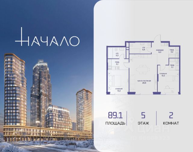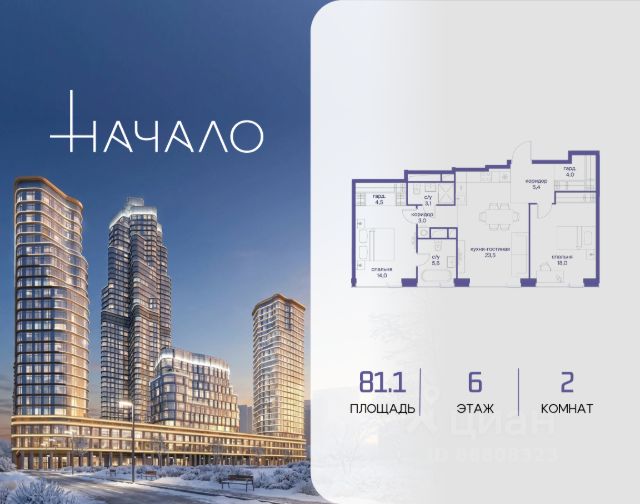 В престижном районе Пресня, на перекрестке делового и исторического центров Москвы, продается двухкомнатная квартира площадью 106.90 кв. м без отделки. Квартира находится на 6 этаже 24-этажного дома, в новом элитном жилом комплексе "Начало" от девелопера "Донстрой". Реализация проекта запланирована на 1 квартал 2030 года. Начало - футуристический дом на Пресне в нескольких минутах от Сити и Садового кольца. Проект по-настоящему космического масштаба, где есть все, чтобы раскрыть себя и свои возможности. Расположение Пресня - один из самых престижных районов Москвы. Жить здесь - значит стать частью истории столицы, быть в эпицентре деловой активности города и ощущать, как сама Вселенная вращается вокруг вас. - 5 минут пешком до Красногвардейских прудов; - 15 минут пешком до ст. метро "Улица 1905 года"; - 6 минут на автомобиле до Садового кольца и небоскрёбов "Москва-Сити"; - 12 минут на автомобиле до Кремля. Архитектура как путешествие Как росток пробивает скалу, как растет кристалл, как ракета устремляется ввысь - так формируется архитектурный образ этого дома. Точно выверенный баланс между футуристичными формами и функциональным содержанием дома выводит жизнь в нем на новую орбиту. Стеклянные фасады отражают небо и город, превращая здание в зеркало для окружающего ландшафта. Двор между небом и землёй Просторная территория двора с тремя тематическими зонами отдыха: "Млечный путь" - для детских игр и развлечений; "Космический сад" - для тихого отдыха и релакса; "Метеоритный сад" - для любителей спорта. Открытый променад - сквозной маршрут на крыше стилобата с зонами отдыха, занятий спортом, детских игр и совместной работы. Все площадки плавно связаны между собой прогулочной дорожкой. Теплая кольцевая галерея и мосты над пространством двора - все корпуса "стыкуются", точно модули космической станции. Главный центр притяжения В составе проекта возводится собственный комьюнити-центр, где создана идеальная атмосфера для любых начинаний: - Детский клуб для будущих покорителей Вселенной; - Коворкинги для решения задач планетарного и космического масштабов; - Переговорные для судьбоносных и просто важных встреч; - Лаунжи с атмосферой дзена и релакса; - Библиотека для спокойного чтения; - Кинотеатр для классики и блокбастеров. Территория комфорта и приватности Всё нужное рядом: - Современный образовательный центр со школой и детским садом - для ваших детей; - Фитнес-центр с бассейном - для релакса и борьбы со стрессом; - Ресторанная улица: кафе, рестораны, летние террасы - для деловых обедов и семейных ужинов; - Пекарня и минимаркет в доме - для ежедневных покупок; - Сквер у дома - для неспешных прогулок и спокойного отдыха; - Никаких такси на улице. Машина заберет вас прямо в подземном паркинге вашего корпуса. Элитное жилье - 2-комнатная квартира на улице Сергея Макеева в Москве.