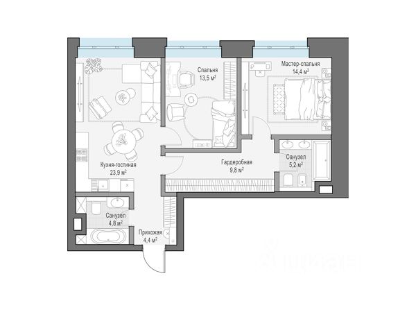 Продаются апартаменты общей площадью 173,3 кв. м. с 2-мя спальнями и кухней-гостиной. О жилом комлексе Компания Vesper представляет проект "Левенсон" в исключительной локации — на Патриарших прудах. Проект собирает комбинацию из легендарных исторических зданий типографии поставщика императорского двора Александра Левенсона и объектов современной архитектуры. Новый проект Vesper создан для ценителей подлинных исторических особняков, наполненных совершенными технологиями для создания абсолютного уровня комфорта и эстетики жизни. Клубный дом "Левенсон" объединяет сразу несколько форматов жилой недвижимости, отвечающих самым высоким запросам: современный дом, два исторических здания, частная резиденция. В проекте представлены квартиры и апартаменты с патио, таунхаусы, пентхаусы с террасами. О застройщике Девелопер проекта Vesper специализируется в премиальном сегменте клубной жилой недвижимости. Портфель компании включает 22 проекта в Москве и странах Европы. Актуальные архитектурные проекты, индивидуальный дизайн, передовые технологии, качественные материалы и лучшие мировые практики воплощены в каждом доме компании. Расположение и транспортная доступность Расположение проекта в районе Патриарших прудов позволит резидентам чередовать яркие впечатления от динамичной жизни в мегаполисе с комфортным отдыхом в уединении. Лучшие рестораны высокой кухни, кафе, театры, выставочные залы и бутики здесь соседствуют с тихими переулками и скверами. Архитектура Архитектурная концепция от бюро "Цимайло, Ляшенко и партнеры" гармонично дополняет шедевры модерна новыми формами и материалами. Все квартиры предлагаются с высококачественной отделкой натуральными материалами, оборудованными кухнями и ванными комнатами. Комфорт жизни резидентов будут обеспечивать шумопоглощающие окна, многоуровневая система очистки воды, технология "умный дом" и система очистки воздуха. Инфраструктура Вся территория резиденций "Левенсон" объединена ландшафтным дизайном, выполненным в изящных пропорциях клубного пространства. Благодаря смене архитектурных эпох между зданиями сформировалось несколько камерных пространств, каждое из которых архитекторы бюро Basis представили в виде отдельной комнаты. Технические детали проекта: — Инновационная система микроклимата. — Приточно-вытяжная вентиляция с подготовкой и увлажнением воздуха. — Система контроля и управления доступом, видеонаблюдение. — Служба ресепшн. Техническая служба эксплуатации и обслуживания здания. — Многоуровневая система очистки воды. — Бесперебойное обеспечение горячей водой. — Окна с повышенным уровнем шумоизоляции.