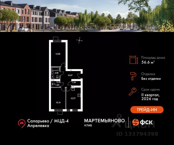 Прямая продажа от застройщика! Жилой Комплекс класса Комфорт. Продаётся 2-к квартира номер 1 общей площадью 64.49 кв.м на 1-м этаже 3 этажного дома. Без отделки. Особенности: - Квартира доступна к покупке в Trade-In. - Просторная спальня, в которой можно разместить большую кровать. - Распашная планировка - отличное сочетание удобства и свободы. - Увеличенное число окон - Гостевой санузел - комфорт и удобство для ваших гостей. - Евроформат - просторное и удобное жилье с отличной планировкой. - Дополнительный вход - удобство для семьи и гостей. - Гардеробная - удобство для хранения и организации вещей. - Терраса - место для загара и вечерних посиделок. - Вид из окна: двор - Вид из окна: парковка - Собственный бассейн для жителей Без отделки. Чистый холст для воплощения интерьера вашей мечты. Расположение комплекса: "Мартемьяново Клаб" - клубный поселок таунхаусов от ФСК в Наро-Фоминском городском округе. Счастливая жизнь складывается из плюсов двух миров: городского и загородного. Вы наслаждаетесь свежим воздухом, лесными пейзажами вокруг и отдыхом у собственного пруда. При этом пользуетесь комфортной инфраструктурой, всеми центральными коммуникациями, собственной современной школой и детским садом. Закрытая охраняемая территория дарит вам чувство спокойствия и безопасности. А заказать все услуги возможно через мобильное приложение управляющей компании. Выбираться во внешний мир легко благодаря хорошей транспортной доступности. Транспортная доступность: "Мартемьяново Клаб" расположился в экологичном районе в 27 км от МКАД по Киевскому шоссе. Выбирайте любимую аудиокнигу, и уже через пару глав вы окажетесь в Москве. Добираться в город можно как на личном авто, так и на общественном транспорте до станций метро "Саларьево" и "Внуково". Авитомобиль: До Киевского шоссе - 4 минуты До МКАД - 25 минут До ТТК - 45 минут До Садового кольца - 50 минут Общественный транспорт: До станции метро "Саларьево" - 25 минут До станции МЦД4 "Апрелевка" - 10 минут До остановок общественного транспорта - 8 минут пешком Внутренняя инфраструктура: Сердце поселка - живописный пруд. У пруда расположен собственный пляж. Здесь так приятно проводить жаркие летние дни. А в зимние холода гладь пруда превращается в веселый каток. И, поверьте, дарит не меньше счастья. У пруда берет начало главная пешеходная артерия поселка - прогулочный бульвар длиною 1,8 км. Он ведет в лесную зону с ручьем и сам напоминает реку, только сухопутную. 3,3 га парковой зоны наполняют окружающее пространство энергией динамичных зон, которые сменяются зонами спокойствия. У бульвара есть "притоки" - второстепенные пешеходные улочки с площадками для игр и тихого отдыха. Круглая центральная площадь - место встречи и знакомства с соседями. Здесь круглый год проводят всевозможные культурные мероприятия, отмечают праздники, устраивают ярмарки или тематические гараж-сейлы. Рядом располагаются качели, лабиринт, детские площадки и кафе. Это позволяет каждому найти занятие по душе. Цены указаны с учетом
