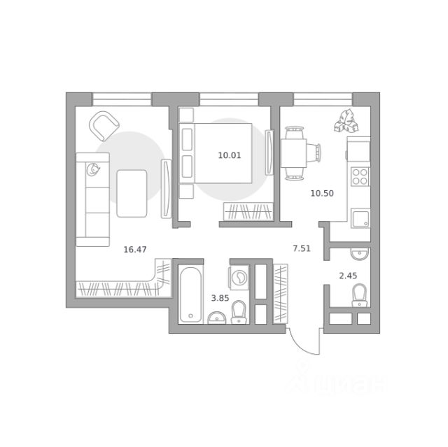 Продаётся 2-комнатная квартира 2, площадью 50,79 м², на 1 этаже в ЖК "Живописный" корпус 1. Стоимость — от 10040610 руб. Квартира без отделки, планировка односторонняя, окна во двор.