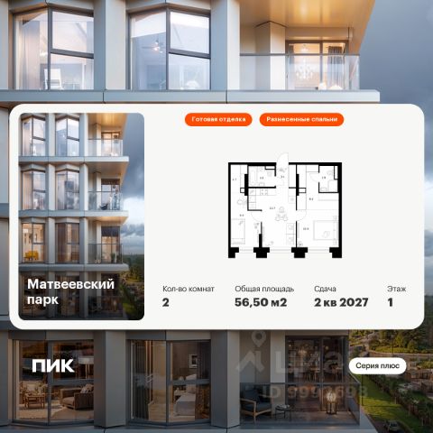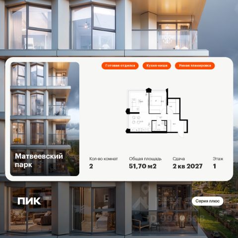 Продаётся 2-комн. квартира площадью 51,7 кв.м на 1 этаже 31 этажного дома (Корпус 4.3, Секция 3) проекта ПИК Матвеевский парк. Светлый просторный подъезд на уровне земли, функциональная планировка, большие окна, c отделкой. "Матвеевский парк" — проект "Серии плюс", расположенный на западе Москвы, в районе Очаково-Матвеевское. Ближайшая станция метро "Аминьевская" находится всего в 3 минутах пешком, а в 20 минутах — МЦД-4 "Очаково". Проект входит в состав Матвеевского кластера — современного района, где есть всё необходимое для комфортной жизни: социальная инфраструктура, парки и общественные пространства. Проект расположен в Матвеевском кластере — новом современном районе, который будет состоять из четырёх кварталов: "Матвеевский парк", "Новое Очаково", "Большая Очаковская 2" и Vangarden. Перемещаться между кварталами будет удобно по 350-метровому пешеходному мосту, под которым появится уютный зелёный парк. У проектов будет общая инфраструктура и благоустроенная территория. Уже открыта часть пешеходного бульвара, который строится по проекту британского бюро Gillespies. Здесь можно гулять после работы, играть с детьми, заниматься спортом и отдыхать у сухого фонтана с ночной подсветкой. В будущем в кластере появится пешеходный мост, который соединит жилые кварталы, и комьюнити-центр "ОМА" с магазинами, кафе, местами для спорта, встреч и общения. Отдыхать и заряжаться адреналином жители кластера смогут в SportHub Extreme — зоне площадью более 3 500 м², рассчитанной на любителей экстремальных видов спорта. Здесь будут площадки для безопасного катания на скейтбордах, роликах, самокатах и велосипедах. Для командных игр — например, мини-футбола и стритбола — появится отдельная универсальная площадка с покрытием из резины. Помимо этого, на территории "Матвеевского кластера" начнут работу пять новых школ, шесть детских садов, поликлиника и многофункциональный спортивный комплекс. Архитектурную концепцию корпусов 4 квартала разработало российское бюро KATARSIS. Акцентные белые корпуса с большими окнами делают архитектуру проекта мощной и запоминающейся. А фоновые части зданий придают образу размеренность и спокойствие. В лобби "Матвеевского парка" будет удобная зона ожидания, где можно встретить друзей, курьера или дождаться такси, а также гостевая туалетная комната и колясочная. Артикул 971740 (Застройщик ООО "СПЕЦИАЛИЗИРОВАННЫЙ ЗАСТРОЙЩИК "ЦЕНТРПОЛИС")