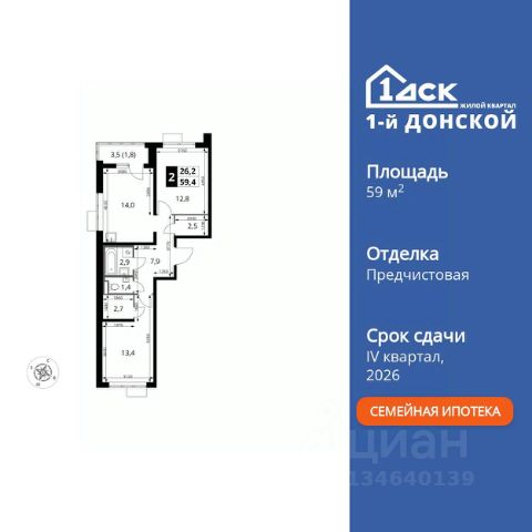 Прямая продажа от застройщика! Жилой Комплекс класса Комфорт Плюс. Продаётся 2-к квартира номер 335 общей площадью 59.4 кв.м. на 10-м этаже 24 этажного здания. Отделка Whitebox. Особенности квартиры: - МЦД-5 в пешей доступности - Квартал с собственной набережной - Свои 2 детских сада и школа - Мастер-зона с гардеробной. Просторное место для отдыха и удобного хранения вещей. - Мало квартир на этаже - уединение и тишина. - Увеличенное количество окон - дополнительное освещение и свежий воздух. - Евроформат - просторное и удобное жилье с отличной планировкой. - Линейная кухня - функциональность и практичность в одном решении. - Возможность добавить спальное место - дополнительный комфорт для гостей. - Гардеробная - удобство для хранения и организации вещей. - Лоджия - уютное место для отдыха и тишины. Квартира с предчистовой отделкой (White box). Вам не придется заниматься черновыми и трудоёмкими работы, а чистовую отделку и дизайн - сделайте на свой вкус. Информация о комплексе: Комплекс 1-й Донской расположен в 7 км от МКАД по трассе М-4 Дон. В нем сочетаются все плюсы комфортной городской среды и природного окружения. В проекте достаточно большой процент квартир, выходящих на 2-3 стороны света. Секции-маяки формируют у зданий визуальную L-форму, что придает застройке структуру и ритмику объемов. На ощущение динамики работает и разная этажность зданий. Теплая цветовая палитра фасадов отражает природу Дона. Вечерами дома преображаются благодаря архитектурной подсветке, выгодно выделяясь на городском фоне. Природа оказывает положительное влияние на человека на всех уровнях восприятия: через зрение, запахи, звуки, тактильные ощущения. Неподалеку от ЖК Первый Донской: Ермолинский парк, Видновский лесопарк, Жуковский парк Транспортная доступность: Комплекс удобно расположен в 7 км от МКАД по трассе М-4 Дон (через Видное). Расстояние до Каширского шоссе составляет 12 км. Добраться до метро и центра Москвы позволяет развитая сеть маршрутов общественного наземного транспорта. Действующая ж/д станция Калинина Павелецкого направления в 15-17 минутах ходьбы (МЦД-5 в 2025-2026 гг). Внутренняя инфраструктура: Проект 1-й Донской соседствует с бурно развивающимся районом, основная инфраструктура которого уже сложилась. В строительстве современных жилых комплексов в округе есть свои плюсы: здесь формируется продуманная и комфортная городская среда. Что касается внутренней инфраструктуры, на территории квартала будут расположены собственные муниципальные 2 детских садика и школа, которые помогут совместить приятное с полезным. Территория комплекса пронизана целой сетью живописных пешеходных маршрутов, позволяющих попасть в любой уголок района. Основные пути, как водится, "торговые". Они проходят вдоль магазинов, кафе и других представителей коммерции и отделяются от проезжей части зеленой "фито" - стеной. Среди крупных социальных объектов предусмотрены своя поликлиника и торговый центр с примыкающей площадью для обществе