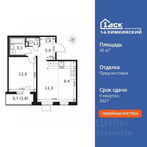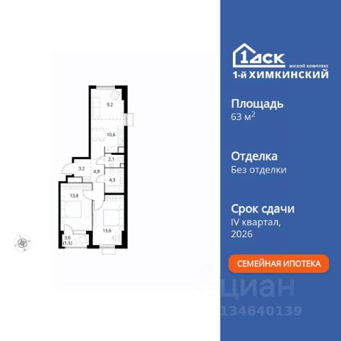 • ИПОТЕКА 10% ДЛЯ ВСЕХ БЕЗ НАЦЕНОК • ДОСТУПНО ПО СЕМЕЙНОЙ ИПОТЕКЕ Прямая продажа от застройщика! Жилой Комплекс класса Комфорт. Продаётся 2-к квартира номер 107 общей площадью 49.5 кв.м. на 10-м этаже 10 этажного здания. Без отделки. Цена с учётом скидки. Особенности квартиры: - Линейная планировка - максимальная функциональность и удобство. - Раздельный санузел - больше удобства для всех членов семьи. - Евроформат - просторное и удобное жилье с отличной планировкой. - Увеличенная высота потолков - ощущение простора и легкости. - Линейная кухня - функциональность и практичность в одном решении. - Гардеробная - удобство для хранения и организации вещей. - Ниша под шкаф - компактное и удобное место для вещей. - Лоджия - уютное место для отдыха и тишины. Информация о комплексе: Квартал класса комфорт плюс, где современное городское пространство граничит с удивительной природой вокруг. 1-й Химкинский расположен на территории в 102 га и органично вписан в природное окружение Химкинского леса и канала им. Москвы. В проекте предусмотрена богатая коммерческая инфраструктура с собственным торговым центром, общеобразовательные учреждения и социальные объекты. Изюминкой жилого комплекса будут спортивно-оздоровительный комплекс с термами и SPA и семейный парк развлечений. Транспортная доступность: ЖК "1-й Химкинский" дает возможность выбрать любой способ передвижения как до города, так и до самых разных объектов, которые могут представлять интерес для его жителей. Не важно, какой способ передвижения вы предпочитаете, успевать всегда и везде можно вне зависимости от выбора транспорта. - 8 мин. пешком (800 м) до остановки "Золотая Арка" -10 мин пешком (1 км) до остановки "Поворот на Ивакино" Внутренняя инфраструктура: - Безопасность: закрытые дворы без машин, безбарьерная среда и сквозные подъезды, камеры на детских площадках с возможностью трансляции на смартфоне - Идеальный отдых в кругу семьи: семейный парк развлечений на территории, торговый центр (2-х этажный) общей площадью более 8 тыс. кв. м с фудкортом - Образование: 3 детских сада и современная муниципальная школа на 2450 мест - Спортивная среда: закольцованный веломаршрут с навигацией, спортивный комплекс с термами, закрытый тренажерный зал и зоны ворк-аута - Социальные объекты: поликлиника со станцией скорой помощи, пожарное депо - Подземный паркинг и кладовые помещения на -1 этаже, станция техобслуживания и автомойка на территории
