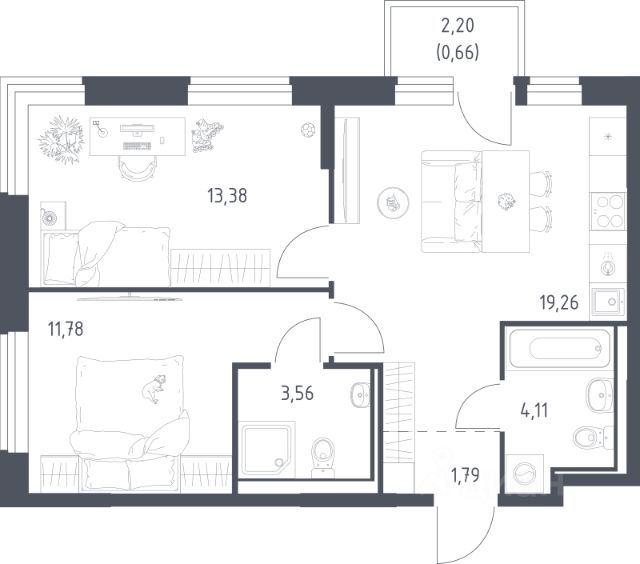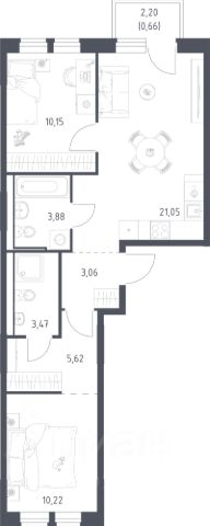 Продаётся 2-комнатная квартира 211, площадью 47,40 м², на 10 этаже в ЖК "Бригантина" корпус 1. Стоимость — от 12841531 руб. Квартира white box, планировка односторонняя, окна во двор.