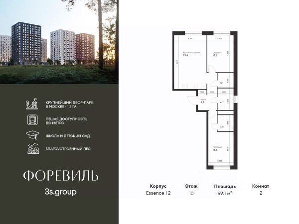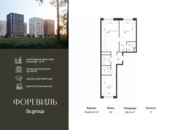Продажа 2-комнатных квартир на 10 этаже рядом с метро Коммунарка