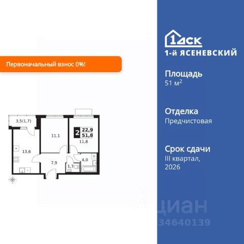 Прямая продажа от застройщика! Жилой Комплекс класса Комфорт Плюс. Продаётся 2-к квартира номер 679 общей площадью 54.7 кв.м. на 10-м этаже 16 этажного здания. Без отделки. Цена с учётом скидки. Особенности квартиры: - Квартиры рядом с метро - м. Корниловская 9 мин пешком - 63 га лесопарка за окнами - Школа c it-кластером и бассейном. 2 детских сада - Просторная спальня, в которой можно разместить большую кровать. - Линейная планировка - максимальная функциональность и удобство. - Гостевой санузел - комфорт и удобство для ваших гостей. - Ниша под шкаф - компактное и удобное место для вещей. - Лоджия - уютное место для отдыха и тишины. Информация о комплексе: В жилом комплексе комфорт-плюс класса "1-го Ясеневского" доступны преимущества двух стилей жизни. Ведь в пешей доступности метро, школа с 25-метровым бассейном и IT-кластером и при этом целых 63 га благоустроенного Троицкого лесопарка под окнами, где так приятно дышать свежим воздухом и слушать пение птиц. Собственная закрытая территория "1-го Ясеневского" представляет собой уютный оазис. Здесь и зеленый освещенный бульвар для прогулок, система велодорожек, маленькая городская площадь, кафе, пекарни и кофе поинты. А еще дворы без машин и многоэтажная парковка. Изюминка территории - фруктовые деревья во дворах и городские сады. "1-й Ясеневский" - всего в 1 км от МКАД, на территории новой Москвы. Жилой комплекс, где есть все необходимое для современного человека. Транспортная доступность: До метро "Корниловская" - 12 минут пешком До метро "Тютчевская" - 25 минут пешком До метро "Теплый стан" - 10 минут на транспорте До метро "Ольховая" - 30 минут на общественном транспорте Личный автотранспорт: Выезд на Калужское шоссе - 500 м МКАД - 1 км Внутренняя инфраструктура: ЖК "1-й Ясеневский" можно назвать идеальным местом для жизни семьи с детьми. Здесь буквально за домом находится Троицкий лесопарк - излюбленное место прогулок молодых родителей. А во внутренних дворах под детские площадки выделены специальные зоны. Они оборудованы всем, что нужно для счастливого детства: современными и максимально безопасными качелями, песочницами и лазалками. Оборудование и игровые сценарии на детских площадках спроектированы вместе с командой детских психологов для правильного развития ребенка и для повышения их интереса. Также рядом с домом два детских садика, один из которых уже построен и школа на 1100 мест. Школу по праву можно назвать образцовым учебным заведением. В ней закладываются основы успешного будущего. Здесь есть класс робототехники, IT-кластер, 25-метровый бассейн и прекрасно оборудованные спортзалы.