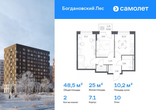 Строим кварталы для жизни с заботой о будущем. Предлагается 2-комнатная квартира комфорт-класса 48,59 кв.м в корпусе 10.2 на 10 этаже, в ЖК "Богдановский Лес" Квартира с чистовой отделкой. Доступность дополнительных опций уточняйте у застройщика. Приобрести квартиру возможно по специальным акциям от застройщика, с текущими условиями акций можно ознакомиться в блоке "Акций". Цена динамическая и может отличаться, уточняйте актуальность у застройщика. "Богдановский Лес" находится в 17 км от МКАДа, но после открытия Южно-Лыткаринской автодороги расстояние уменьшится до 14 км. Рядом с домом — Коробовский лесопарк. Все дома в "Богдановском Лесу" не выше 12 этажей и располагаются в форме полукруга. Такое решение дарит ощущение камерности. На фасадах — кирпич природных оттенков: от белого и бордо до серого и коричневого. В квартале будет все для жизни: поликлиника и спорткомплекс с бассейном, детские сады и школы. За пределами приватных дворов появятся игровые и спортивные кластеры. "Богдановский Лес" — это: 1. До МКАДа — 20 минут на машине, а после открытия Южно-Лыткаринской автодороги — 12 минут 2. До станции метро "Домодедовская" — полчаса на машине 3. Аэропорт Домодедово — в 35 минутах на машине 4. Рядом — лес, реки Пахра и Людовна, Большой Людовинский пруд с зоной отдыха 5. Экомаршрут в Коробовском лесопарке рядом с домом, который соединит кварталы: "Пригород Лесное", "Горки Парк" и "Богдановский Лес" 6. Национальный конный парк "Русь" и парк-отель "Орловский" в 1020 минутах пешком 7. Аквапарк рядом с кварталом — в будущем на территории парк-отеля "Орловский" 8. Прогулочный маршрут через лесопарк 9. Монолитные дома комфортной высоты — от 11 до 12 этажей 10. 4 детских сада, 3 школы и поликлиника, торговый центр, спорткомплекс с бассейном 11. Воркаут-пространства и велопешеходный бульвар 12. Многоуровневые паркинги в пешей доступности 13. Планировки с постирочными комнатами, угловыми окнами с видами на лес