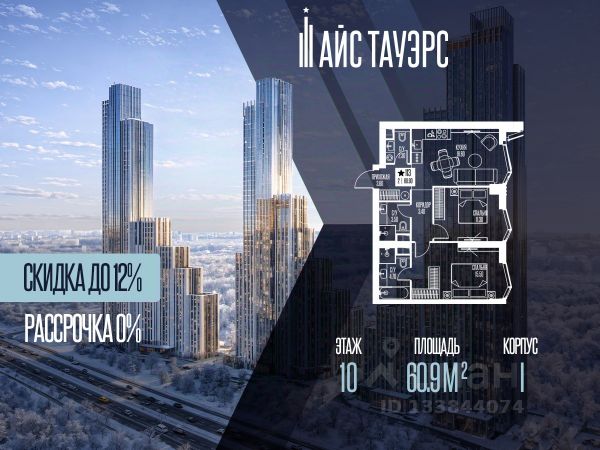 Выгода 12%, беспроцентная рассрочка от застройщика. Продается 2-комнатная квартира на 10 этаже, 60.9 кв.м. площади в жилом комплексе "Айс Тауэрс", который расположен в Западном административном округе Москвы. Архитектура комплекса отличается панорамным остеклением фасадов. Квартиры продаются с опциональной отделкой white box. В комплексе установлены системы видеонаблюдения, климат-контроля (бризеры) и элементы системы "умный дом". Территория и расположение На придомовой закрытой территории обустроены детские площадки, зоны для воркаута и места для отдыха. Комплекс граничит с особо охраняемой природной зоной, что обеспечивает доступ к прогулочным маршрутам. Инфраструктура комплекса • Комьюнити-центр с универсальными залами, коворкингом и библиотекой. • Помещения для детских занятий и мастер-классов. • Предусмотрены кабинеты для приема специалистов (стилистов, массажистов). В комплексе работают круглосуточная консьерж-служба и служба доставки (внутри комплекса). Доступны услуги парковки (valet) и помощи с багажом (беллмены). Для повседневного удобства предусмотрены: • Колясочные и велосипедные хранилища. • Душевые для домашних животных и груминг. • Мобильное приложение для управления сервисами.
