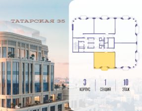 Продается просторная квартира площадью 100.90 м2 в жилом комплексе ТАТАРСКАЯ, 35. Квартира находится в 1 секции корпуса 2. Этаж 10-й из 19. Квартира без чистовой отделки, с просторной кухней 26.90 м2. Жилая площадь 37.60 м2. Высота потолка от 3.50. ТАТАРСКАЯ, 35 - новая архитектурная доминанта Замоскворечья, достопримечательность на фотопанорамах исторического центра Москвы. Элитный дом, созданный для тех, кто умеет смотреть далеко вперед, мыслить масштабно и воплощать собственный сценарий жизни. Вдохновляющие прогулки по променаду набережной, в уютных переулках, в парке "Зарядье", в Михайловском саду и Репинском сквере. Наслаждение высоким искусством в Третьяковской галерее, Доме Музыки, театральном музее им. А.А. Бахрушина, театре на Малой Ордынке. За окнами - Кремль, высотка на Котельнической, панорамы Замоскворечья и острова Балчуг, огни Садового кольца. Собственные спорт-румы, детская, репетиторская, бьюти-пространства, деловое пространство с коворкингом, переговорной и сигарной. Собственный трехуровневый фитнесс-центр с бассейном, тренажерным залом, сауной, хаммамом, массажным кабинетом. Площадь двора - 1,8 га, половина территории покрыта деревьями, кустарниками и лужайками. Дом расположен внутри Садового кольца - отсюда в считанные минуты можно добраться до важнейших мест столицы: достопримечательностей и парков, театров и ресторанов, деловых и административных центров. 7 минут до Кремля на автомобиле, 15 минут до Третьяковской галереи и 8 минут до Садового кольца пешком. Планировочные решения и визуализации предварительны, возможны изменения.