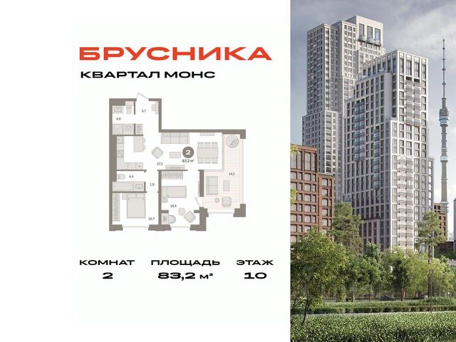 Продажа 2-комнатных квартир на 10 этаже рядом с метро Останкино
